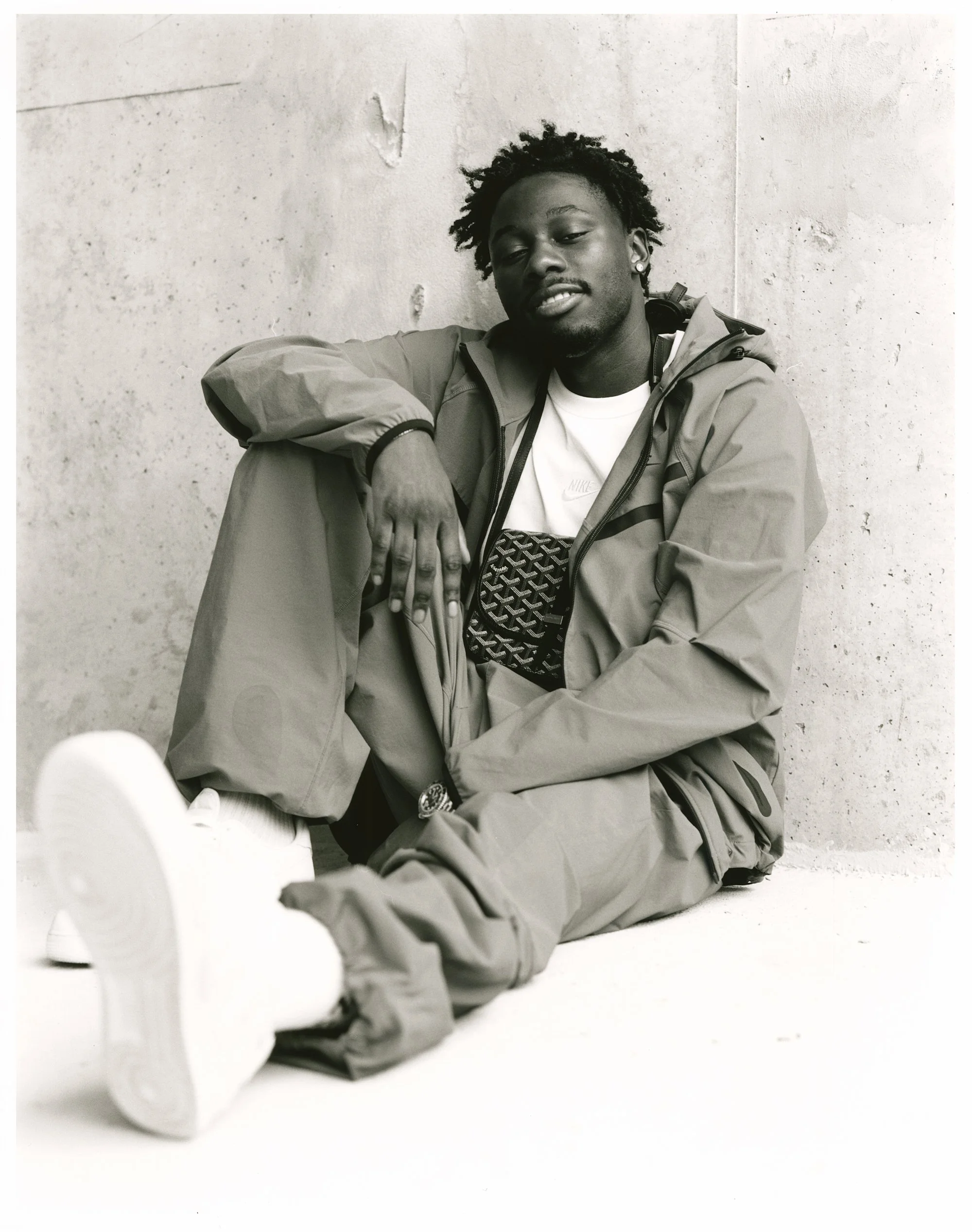 As a '99 baby and the last of eight siblings, he grew up on all the greats—like T-Pain, Jay-Z and 50 Cent, and his sisters put him onto vocal prodigies like Brandy. Through this nuanced medley, he also infuses the heavenly sounds of Congolese evangelic harmonies as he sings about themes ranging from creative introspection, the struggles of growing up in the Parisian housing project Cité des 4000 in La Courneuve, and smoothly delivers braggadocious raps consistent with those of a young artist on the come up.