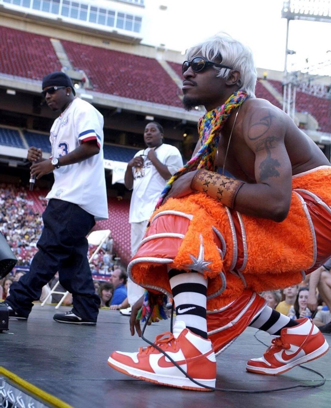 This created a dichotomy in the duo as Big Boi was traditionally sporting more traditional hip hop clothing including sports jerseys and sneakers while André had a more abstract image.